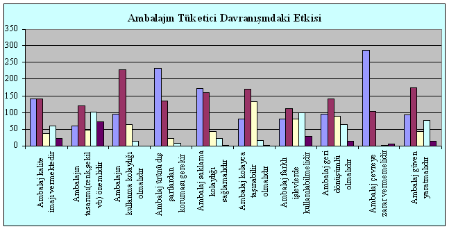 Bu sonuçlar tüketicilerin çevreye karşı duyarlı olmaya başladıklarını göstermektedir. Ambalajın tasarımının çok üzerinde durmadıkları görülse de bu üründen ürüne değişebilir. Ürünler özellikle uygun ambalaj seçimiyle dış şartlardan etkilenmemekte sağlık şartlarına uygun olarak ve kullanım kolaylığı sağlayarak tüketicilere ulaşabilmektedir. Bu da tüketicilerin ürün alırken ambalajlı ürünleri almalarında etkili olmaktadır.