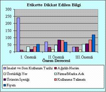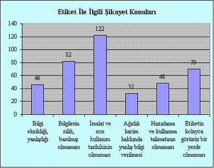 Bu sonuçlardan tüketicinin birinci derecede dikkat ettiği özellik olan imalat ve son kullanım tarihinin olmamasından şikayet ettikleri daha sonra etiket bilgilerinin silik ve basılmamış olmasından ve basılı olanlarında görünür bir yerde bulunmamasından şikayet ettikleri görülmektedir. Bu nedenle işletmelerin tüketicilerin dikkat ettikleri bu özelliklere önem göstermeleri ve ürüne ait bilgilerin tamamının doğru ve tüketicilerin görüp okuyup anlayabilecekleri bir biçimde düzenlemeleri gerekmektedir.