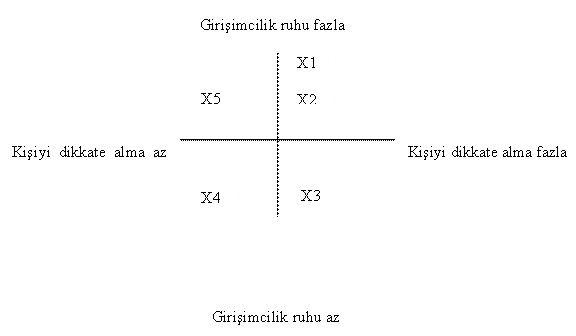 Burada girişimcilik ruhu yüksek olan lider işi etkili biçimde planlayıp organize etmekte, grubu oluşturan üyeler arasında olumlu ilişkiler kurmakta, haberleşmeyi kolaylaştırmakta ve işte başarı gösterme olasılığını artırmaktadır. Kişiyi dikkate alan lider ise, üyelere arkadaşça ilişkiler kurmakta onlara samimi ve dostça yaklaşmakta, bireylerde saygı ve güven uyandırmaktadır. Şu halda yukarıdaki şekilde en etkin lider 1 numara ile en etkisiz lider ile 4 numara ile işaretlenmiş bulunmaktadır 1.2.3. DURUMSALLIK YAKLAŞIMI